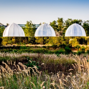 Laboratory with ecosystem spheres for climate research in the National Park Hoge Kempen