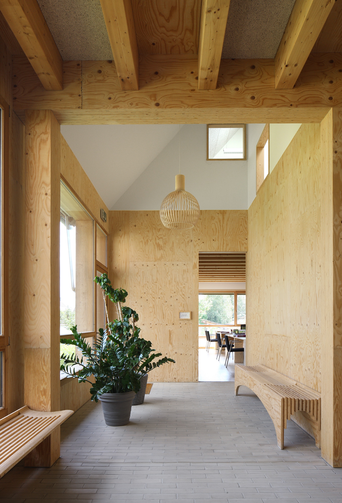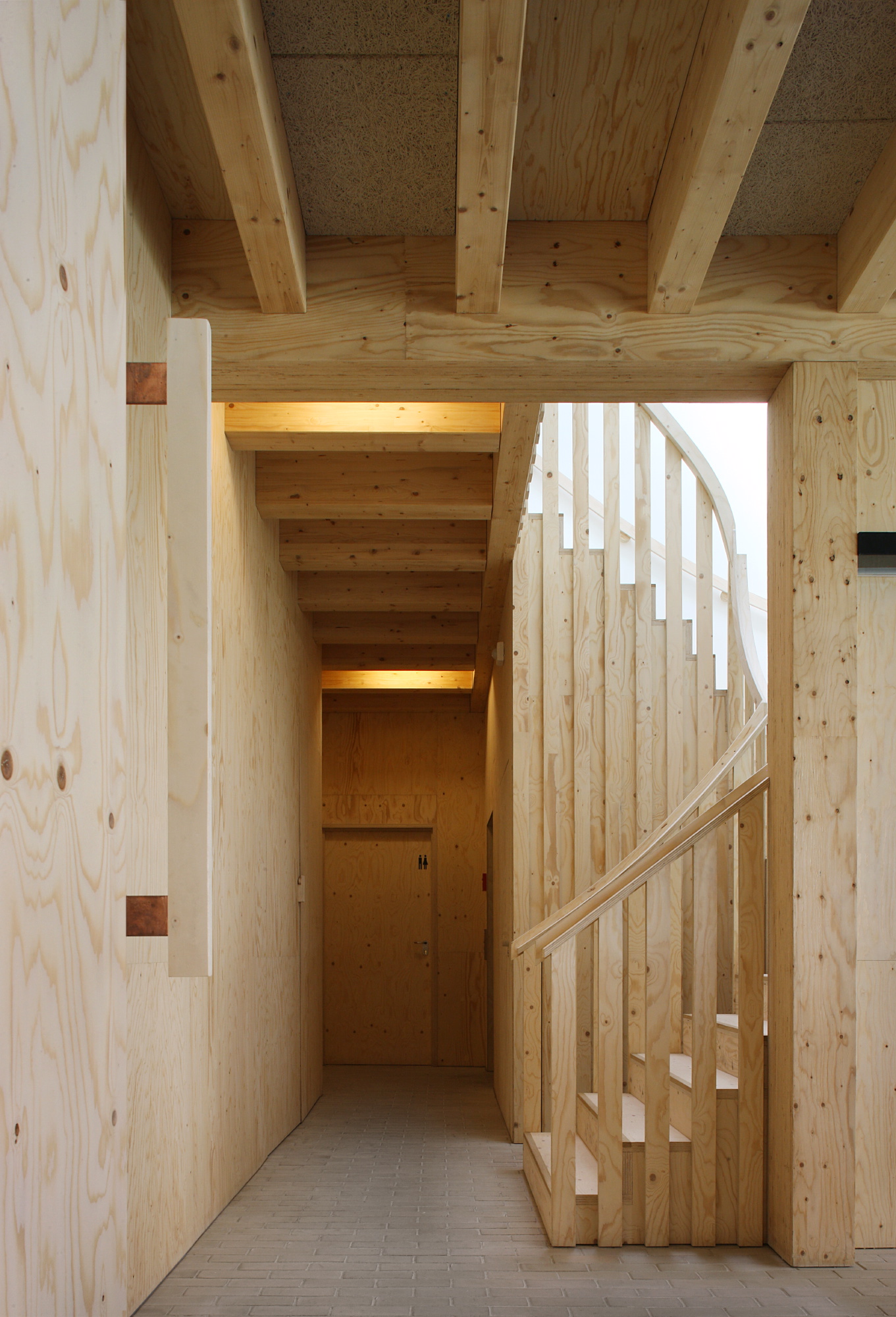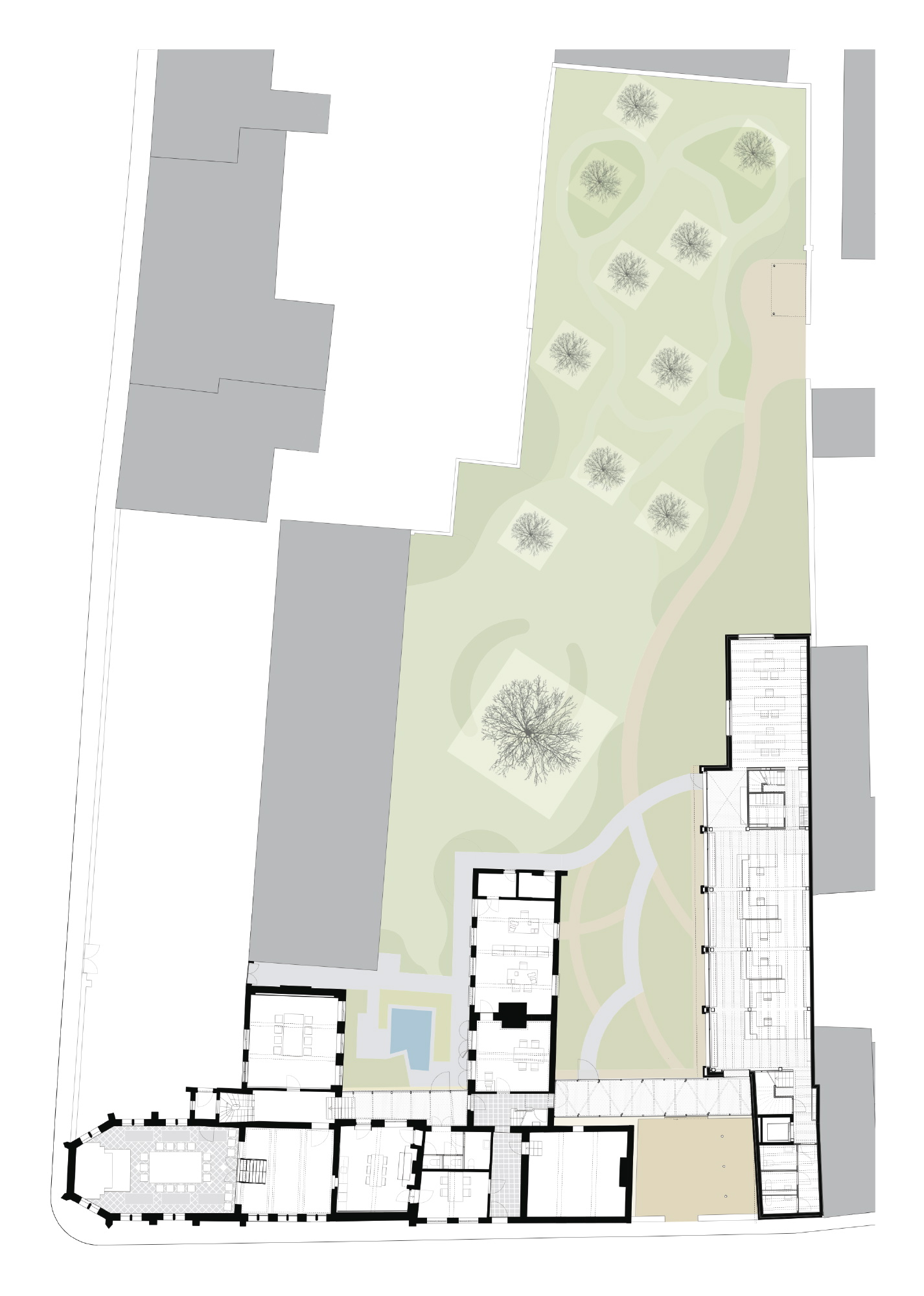 This good neighbour to the old convent was intended to resemble it closely, thus creating a unified whole. We examined the relationships between window and wall, wall and building, brick and brick. It is topped with a tiled roof with no gutters. We used recycled brick whose shades of colour, form and size relate to the brick of the convent. The brickwork is scintled and pointed using a traditional lime mortar. The same mortar is then applied to the bricks in a more diluted form as a wash, softening the façade and making the individual bricks less distinguishable.