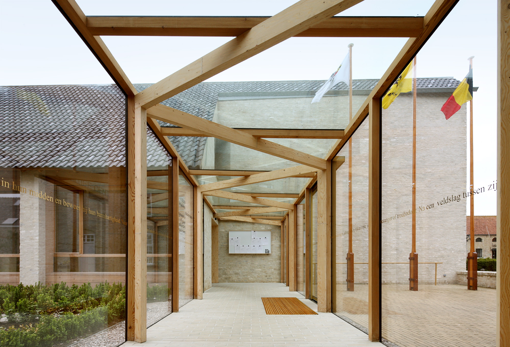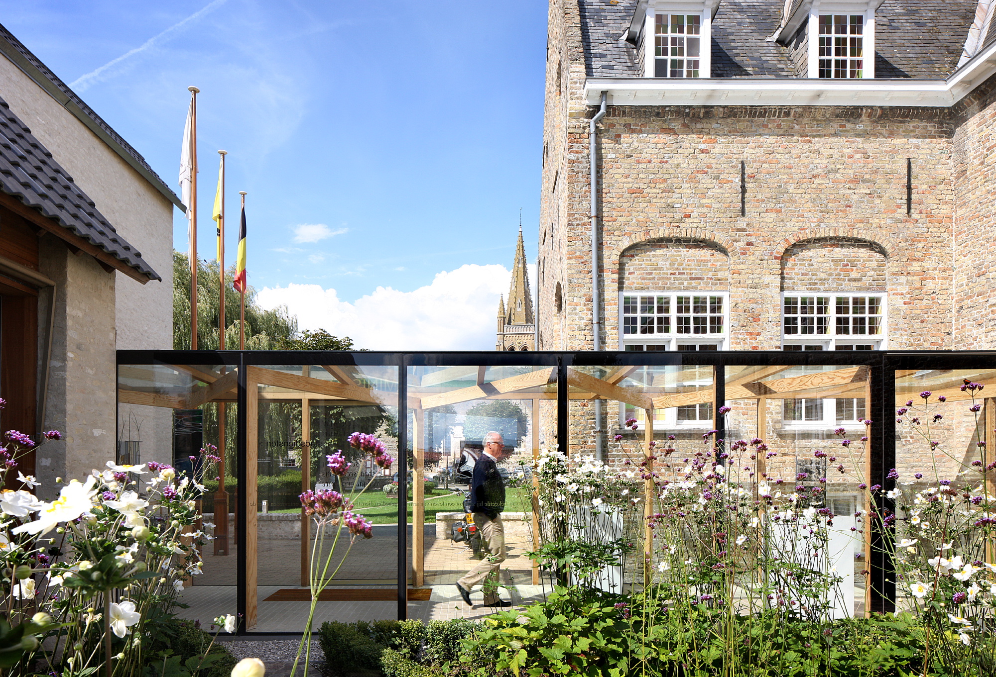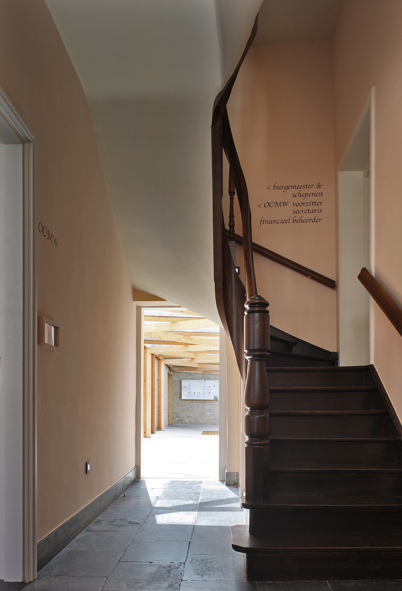 The town of Lo-Reninge, a rural and distinctly historical place, has a good 3000 inhabitants. Visually, it is dominated by buildings in the characteristic yellow brick made from local clay. The centre of the village has since the Middle Ages been bisected by a main street with the market square on its south side. This is the site of the former sixteenth-century convent which the town council recently acquired to use as a town hall.
