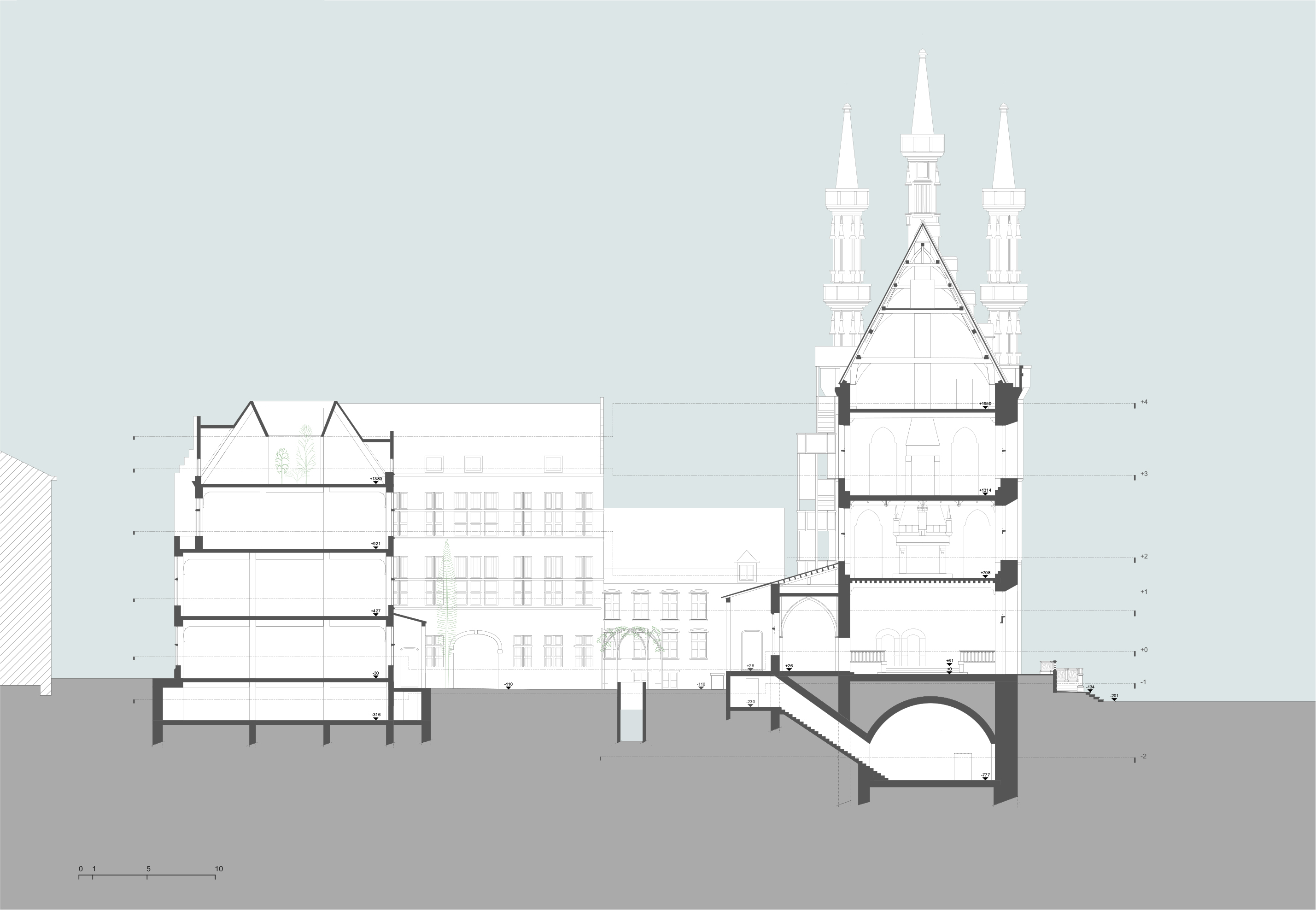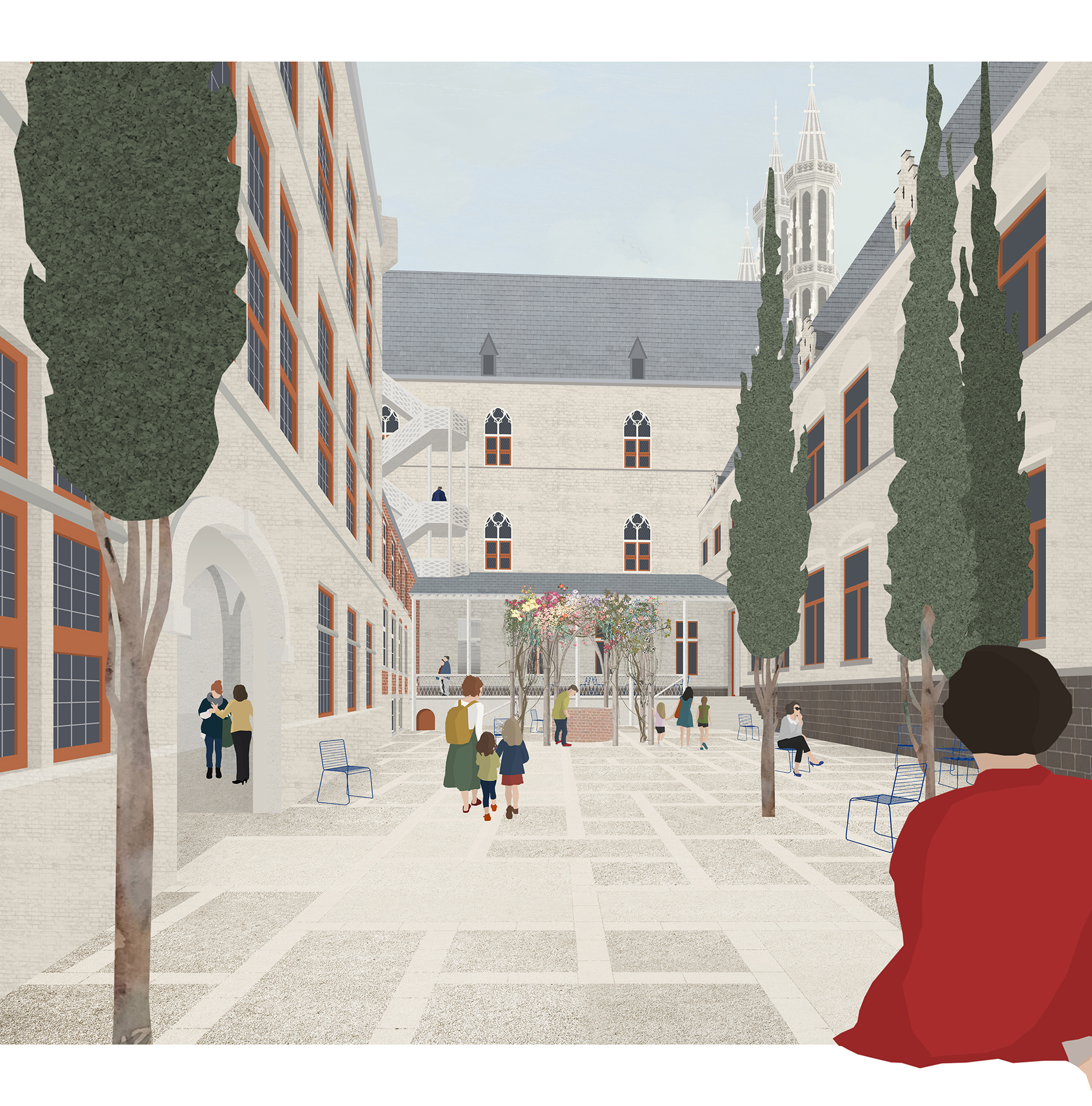 Leuven wants to involve its inhabitants more in the city policy and encourage them to get involved in public life. The historical town hall could become a special place for this, in a sense a neutral place. The citizens are not guests of the services or the administrators, but have their own place, studio, lounge in the new old city hall. At regular intervals, services and administration will be invited for consultations. The city hall now truly becomes a house for the city.
