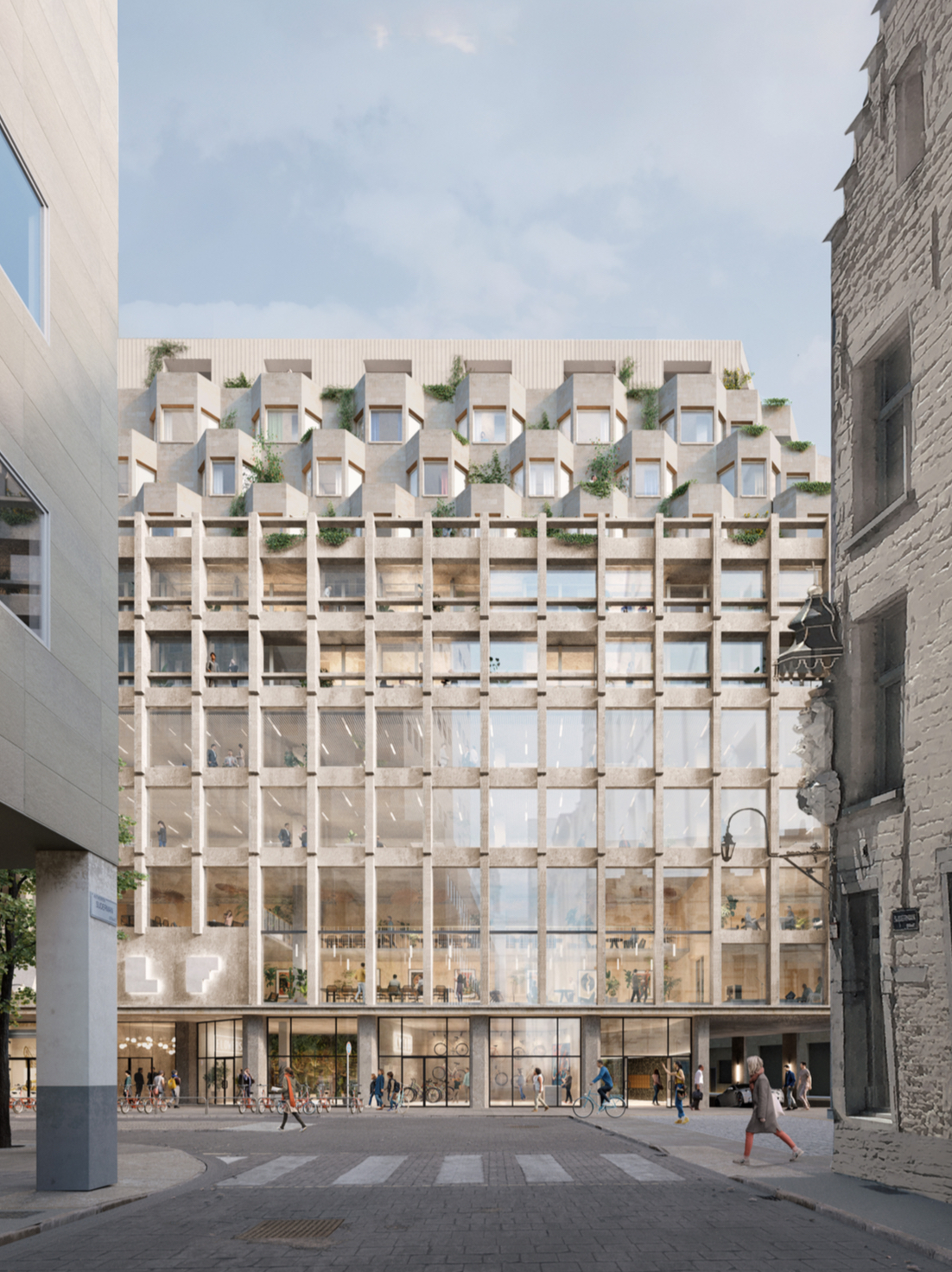 The ambition to design the block as a single building with façades on Schoenmarkt, Eiermarkt and Beddenstraat is now a century old. The presence of the tower calls for an urban gesture. Now is the chance to finally realise this ambition.