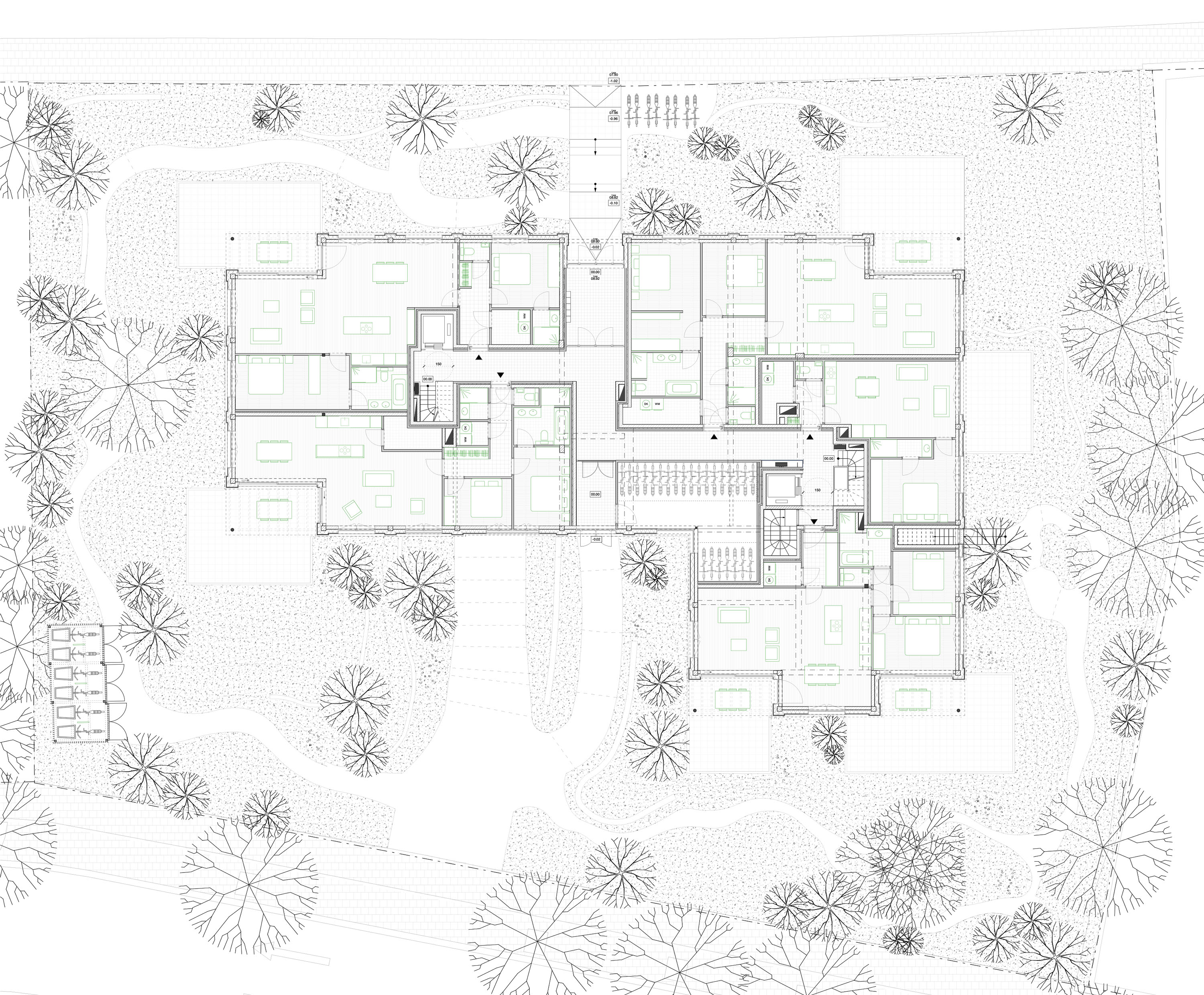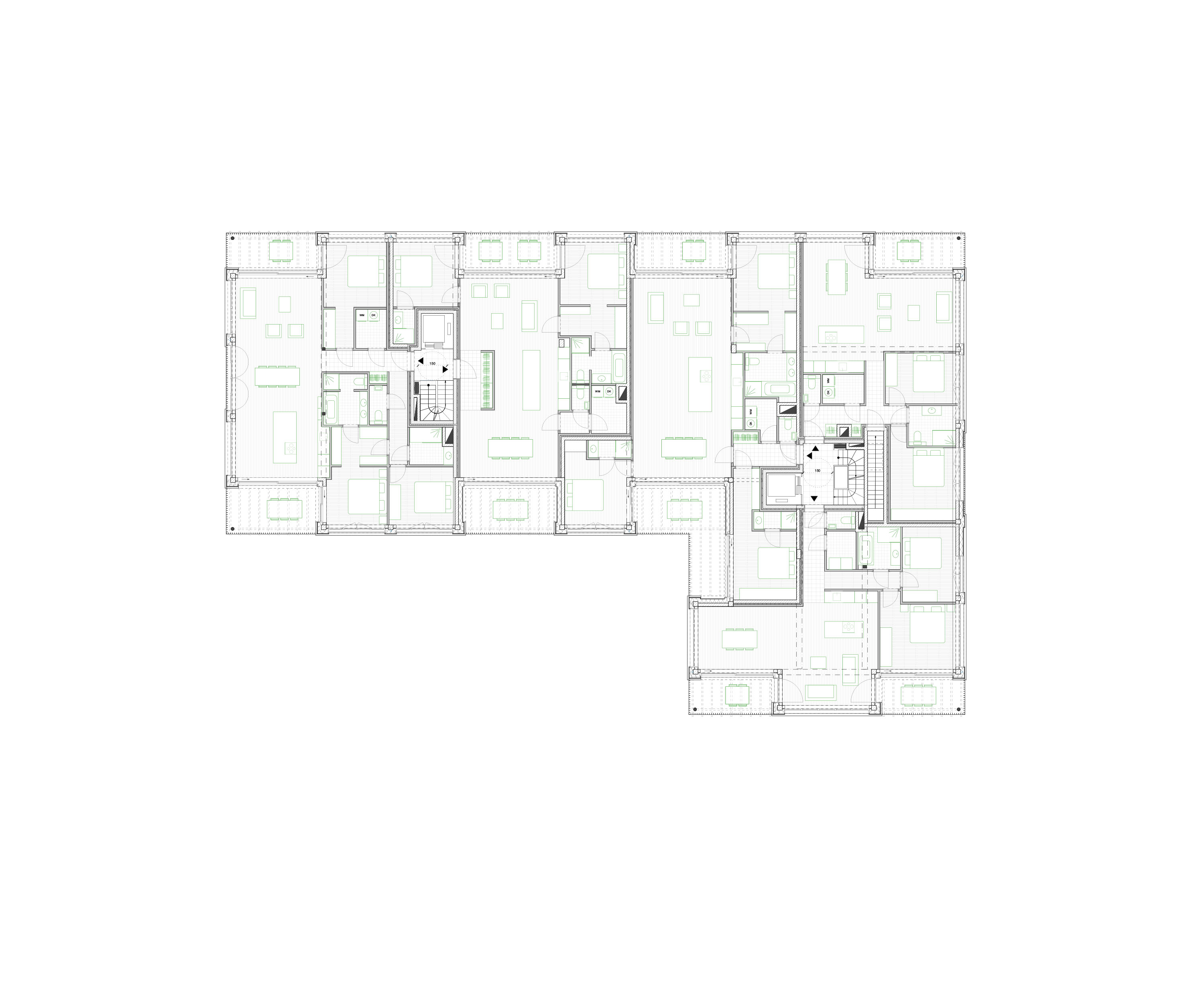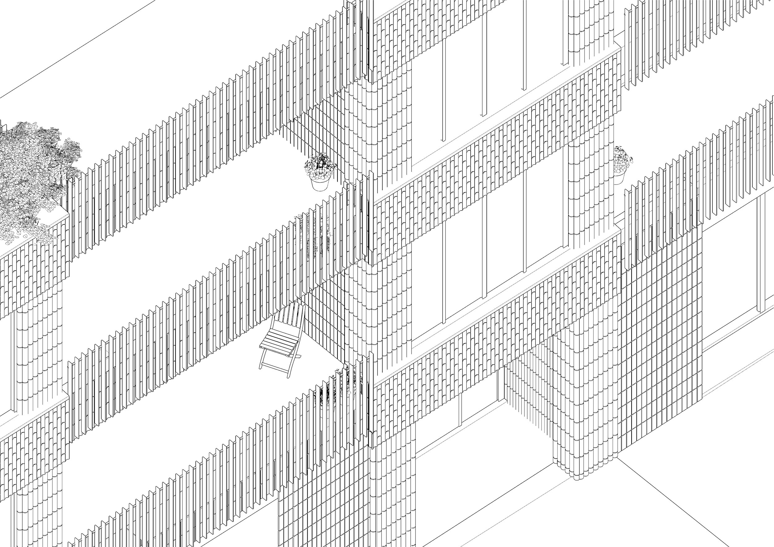 We propose to embed the building, more than now, in a green environment conceived as a large garden. The living quality of the flats will be defined by spacious outdoor spaces carved out of the volume. A new layer will be added. Here we aim to alternate terraces with quality green spaces.
