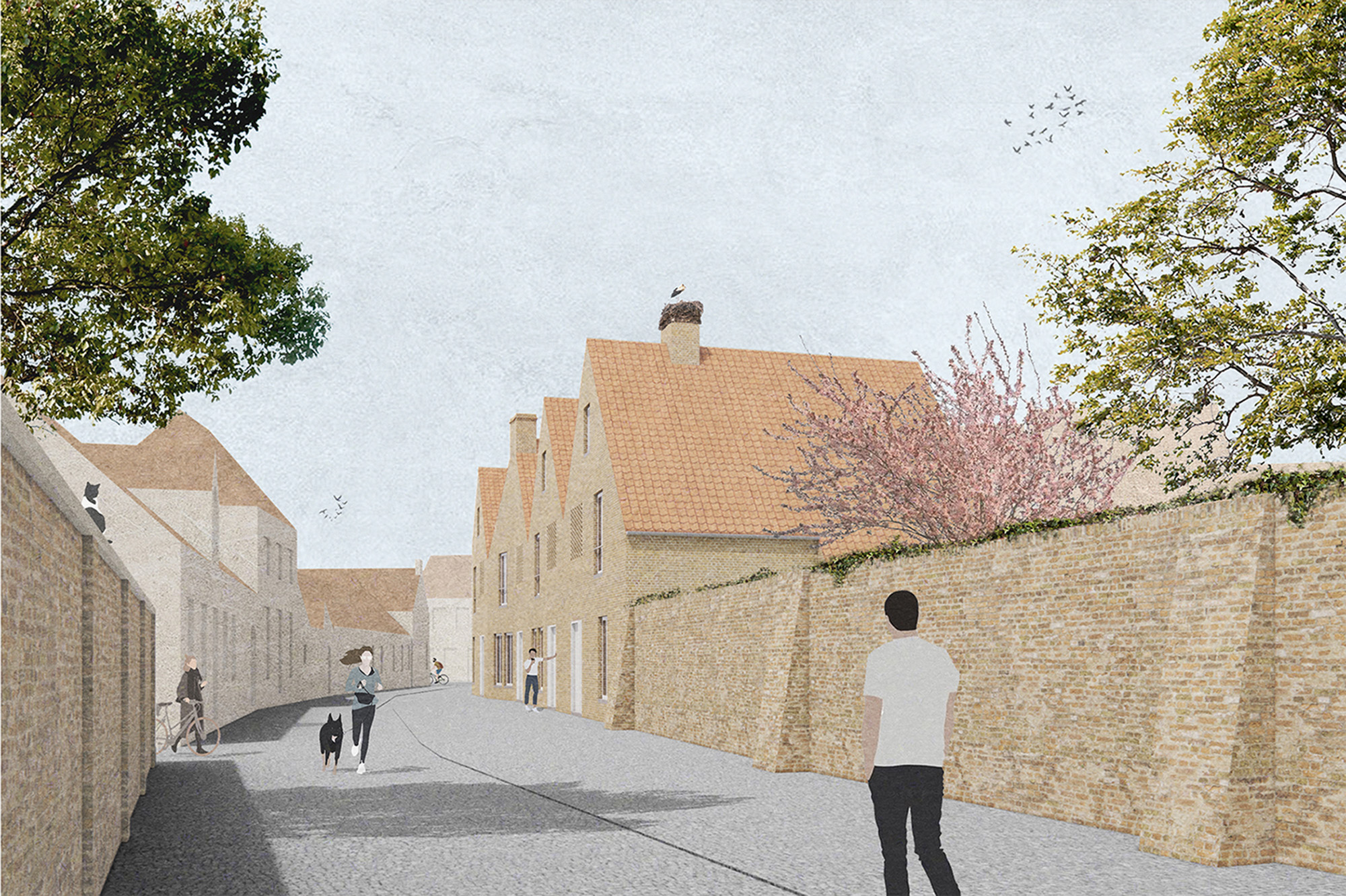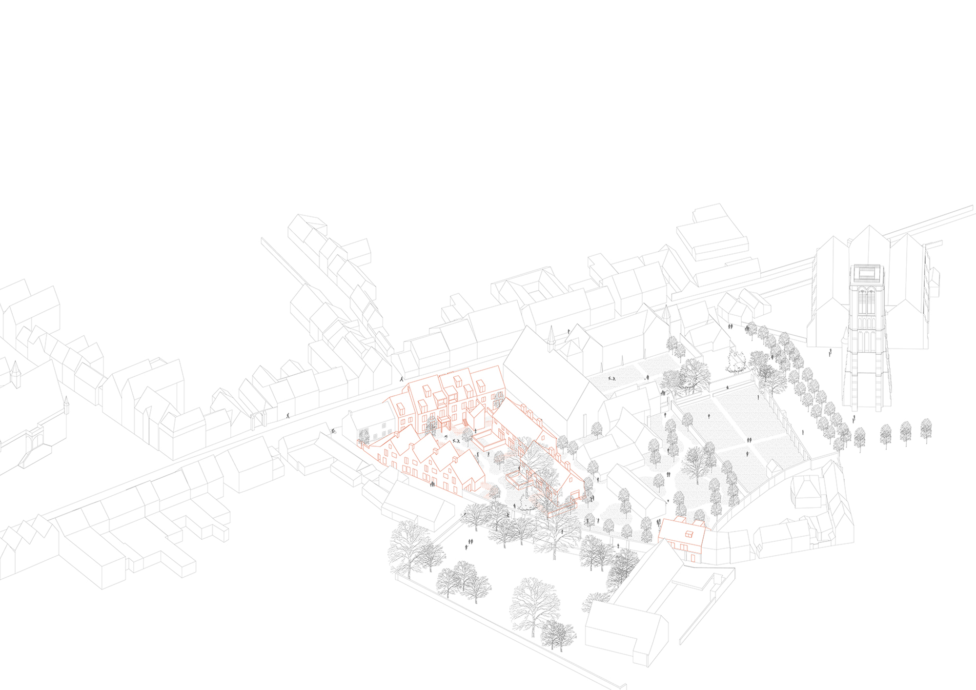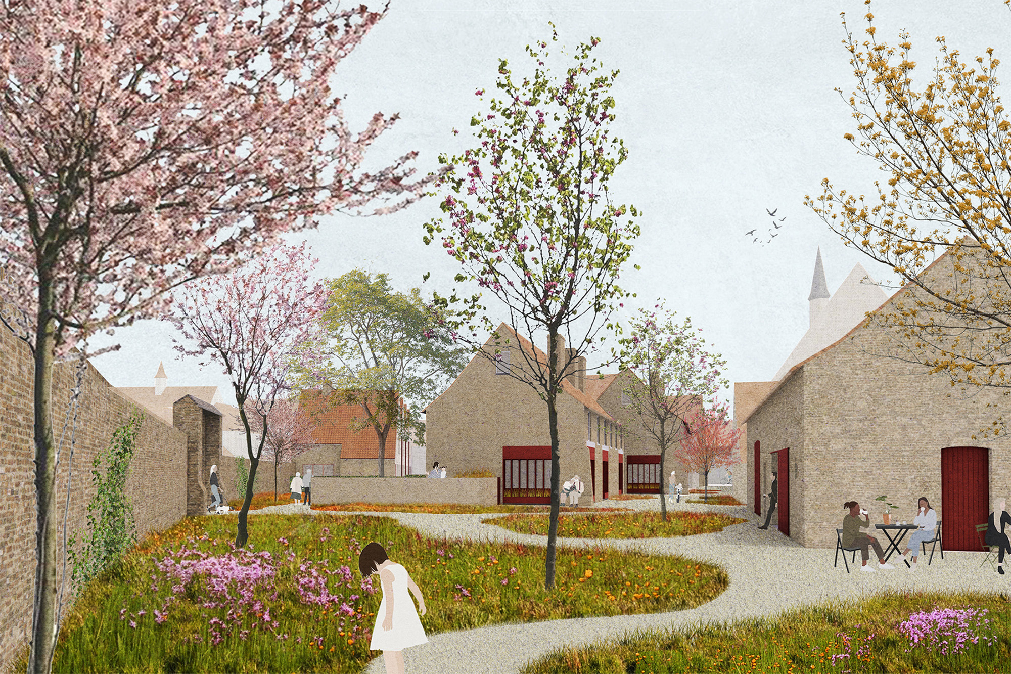 The outdoor spaces of the hospital site are all characterised by a distinct atmosphere and their own historical story. With the redevelopment of the site, we wish to develop a sequence of several garden rooms where the historical function is revived and which highlight the late medieval buildings. A walk through the buildings and garden rooms will allow you to discover the hospital site with its rich history. A green lung in the centre of Damme where there is room for meeting, relaxation and nature development.
