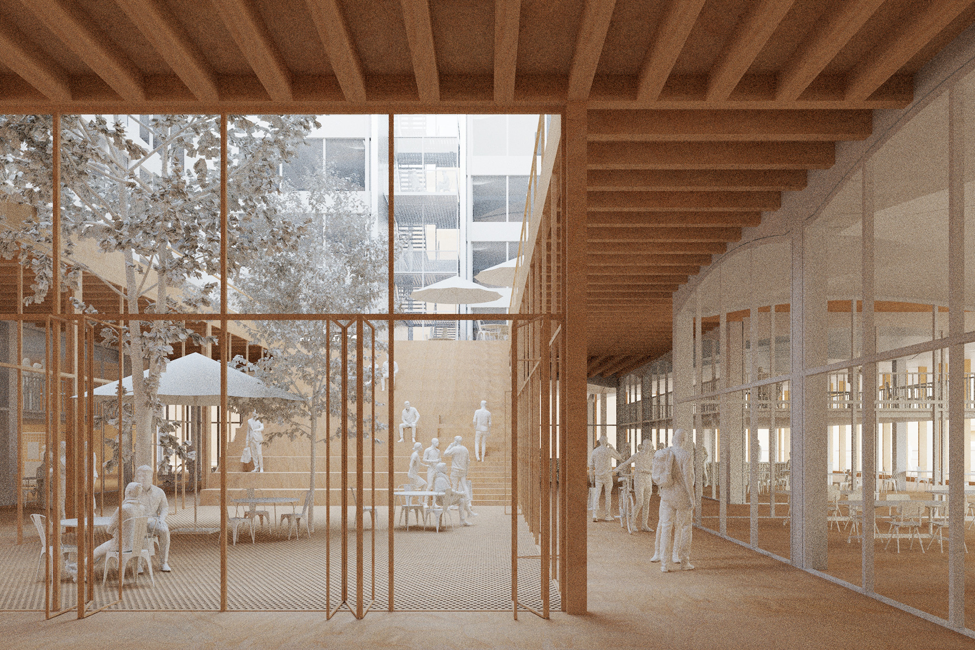 Rather than a literal reconstruction, the project responds to the absence of the original building through architectural ‘attitude’. Inspired by Höger’s innovative spirit, the design is not interested in imitation but in a radical innovative response to the question of how to build climate-aware and resilient.