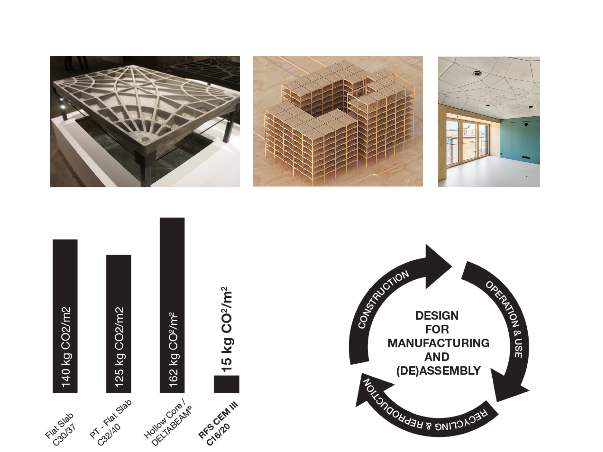 The building’s structure is both evocative and radically sustainable. The floors are formed by a grid of vaults constructed from prefabricated concrete pieces. This thin-shell structure requires no steel reinforcement, significantly reducing carbon footprint. Furthermore, the elements are dry assembled, bound together by the structural logic of the forces in the arch. This allows for the entire structure to be demounted and reassembled, ensuring the building itself to become a resource for future use.