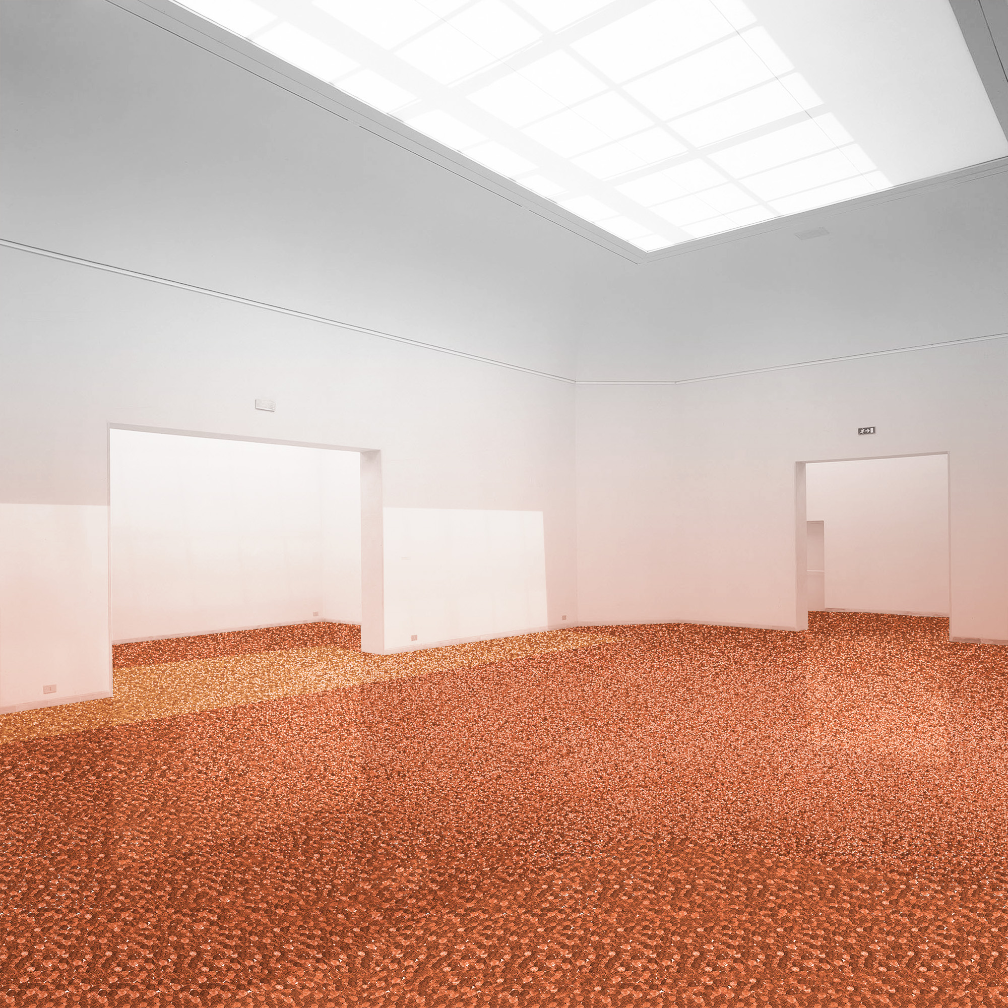 We consider the sober characteristics of the Pavilion as a given and do not aspire to alter them. Our interest lies in intensifying the experience of the existing space with its intrinsic qualities, by altering its character through simple intervention. Derived directly from our everyday practice, another consideration is related to the impact of the budget on the design process and its final result. In our proposal the direct relation between architecture and money is made explicit. Money becomes material. Three and a half million red copper coins are distributed over the floor surface. The entrance hall and vestibule remain free while the floors of all other rooms are covered. The value of this floor covering with about 5 layers of coins equals the average cost of a traditional museum floor finish.