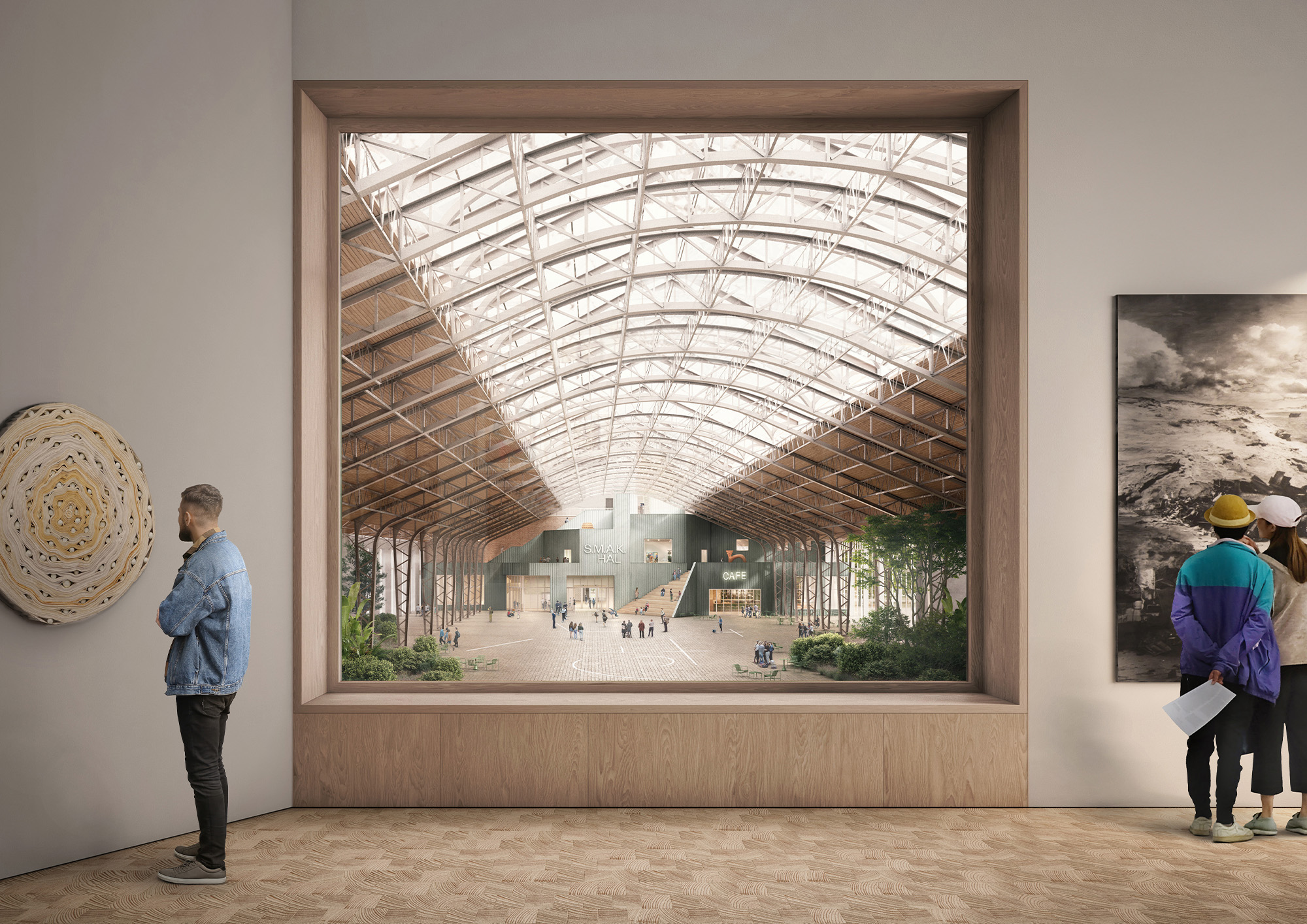 Zowel de S.M.A.K.Hal als het Collectiehuis kijken uit in beide richtingen: de Floraliënhal en het Citadelpark. De positie van ramen en balkons is dusdanig gekozen dat er geprofiteerd wordt van de prachtige hal en dat er verbindingen worden gelegd tussen de kunst en het park.