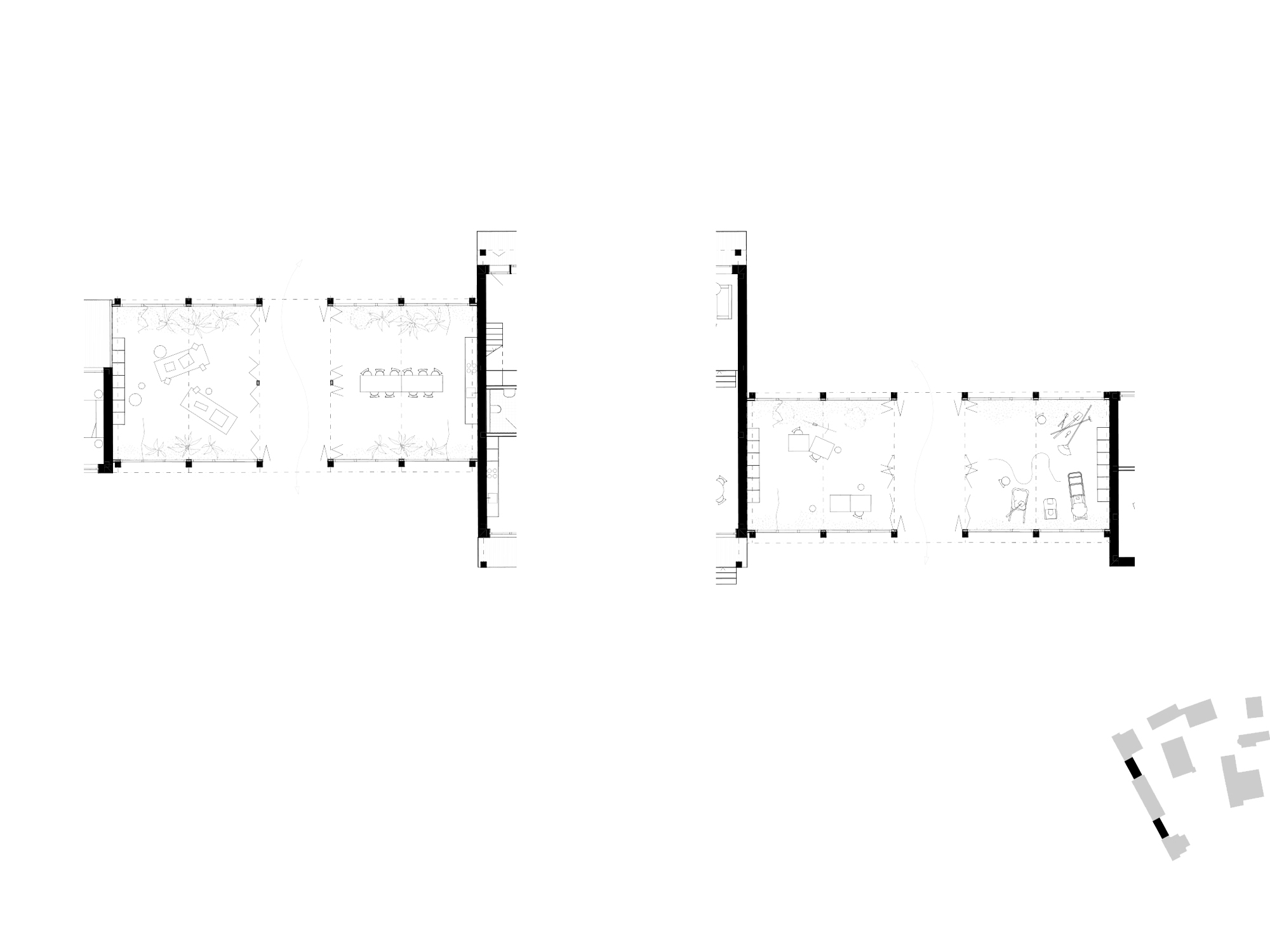 noAa: Three residential buildings, connected by two low passage volumes — the Orangerie and the Lemonerie. The buildings are distinct, but the passages make the ensemble porous. They’re not corridors, but rooms in the landscape.