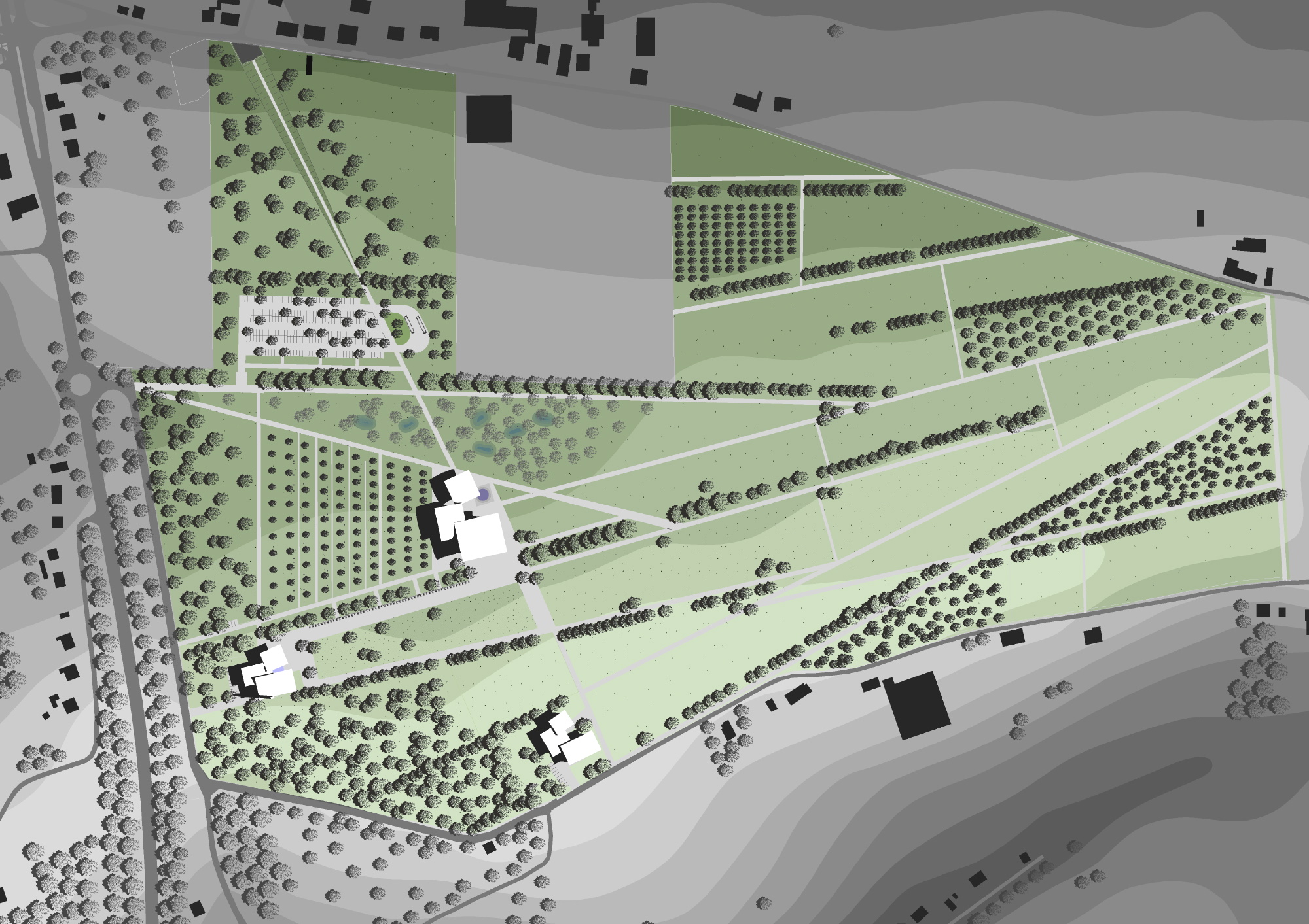 This offers the opportunity to orchestrate time and introduce the traditional walk into the landscape. Each building stands in a specific relationship to its immediate surroundings and the topography of the terrain.