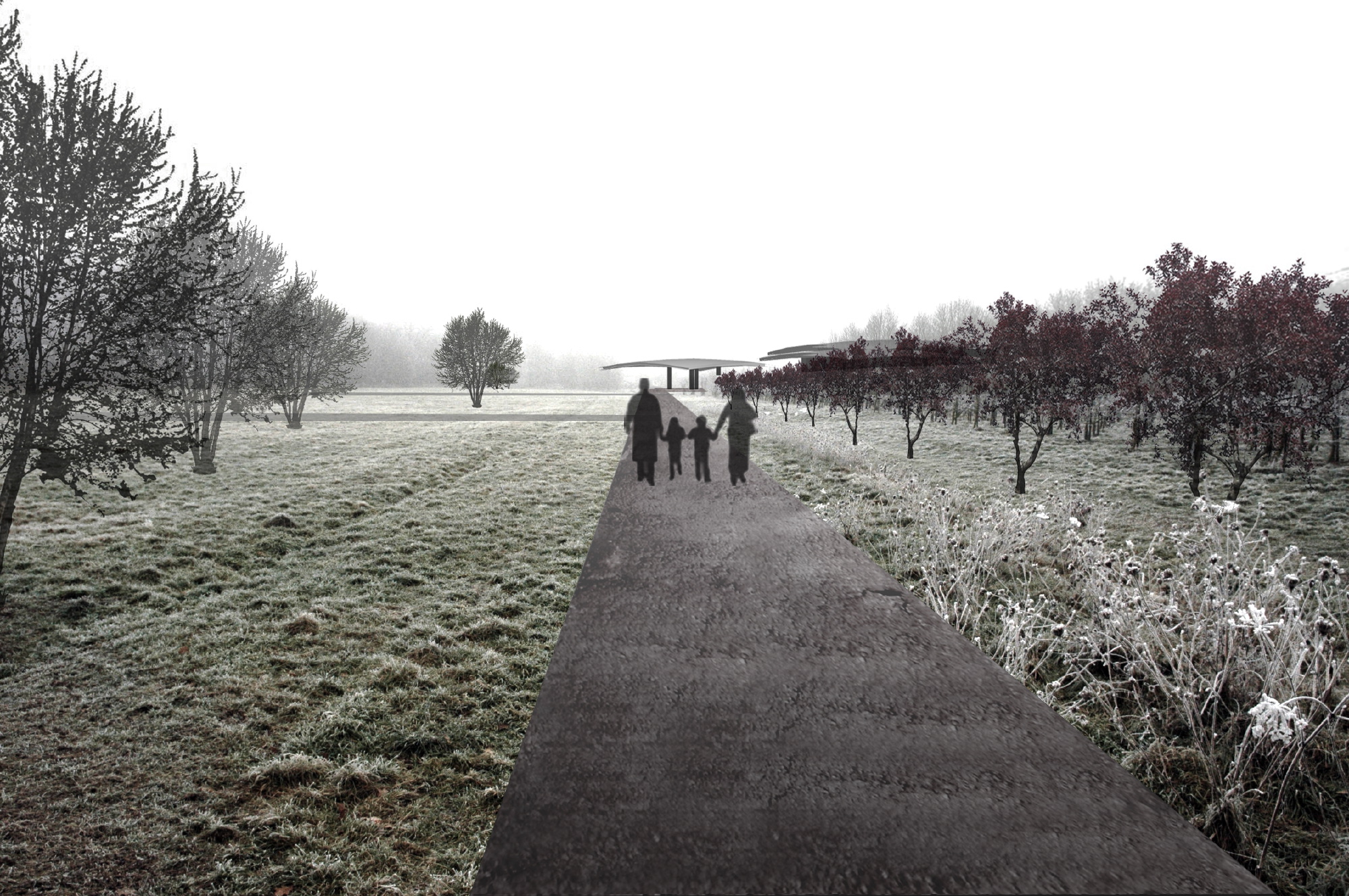 The beautiful extensive landscaped terrain is approached in its entirety. The choice was made to house the various functions – farewell, meal, cremation – in separate buildings.