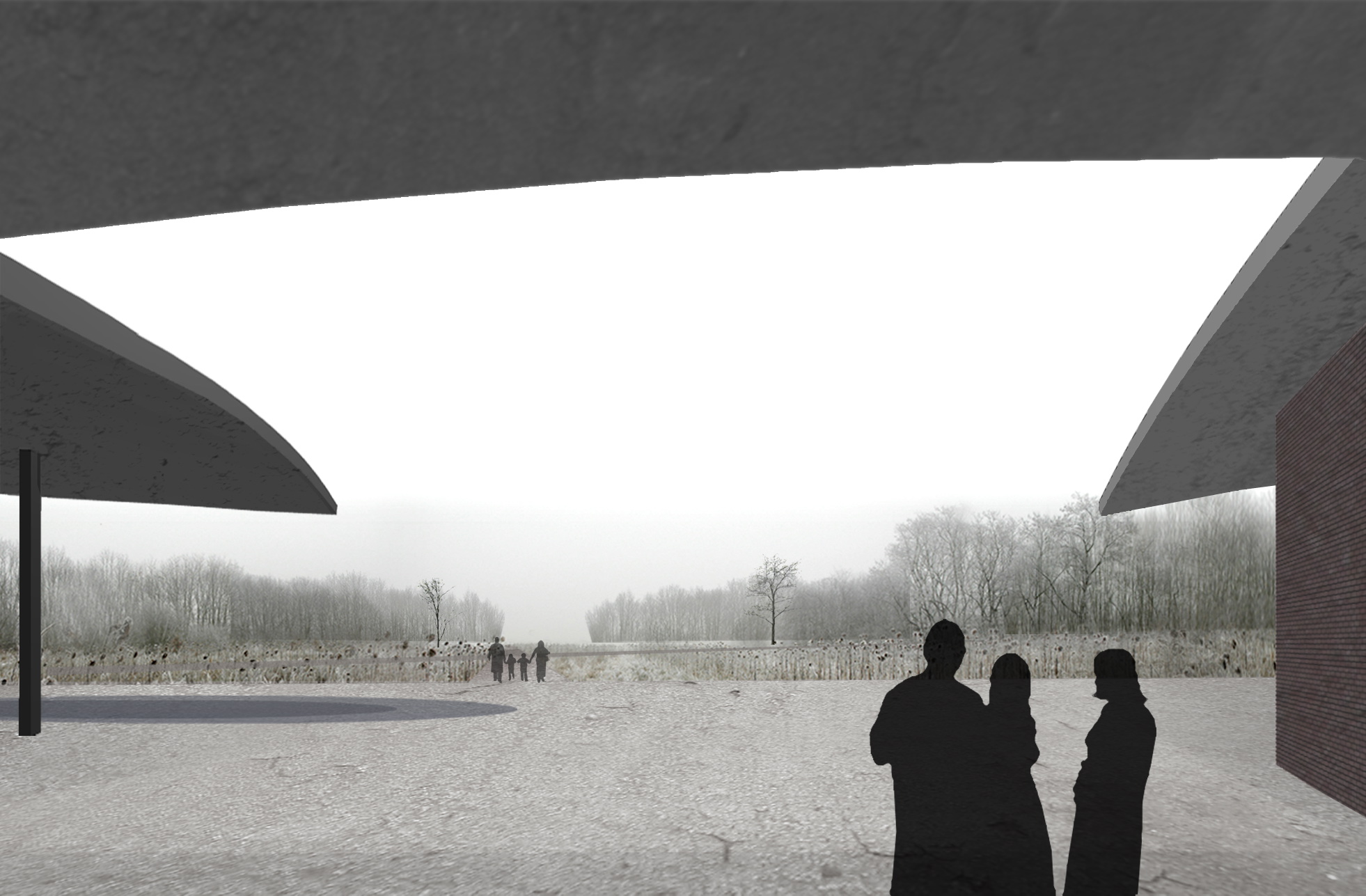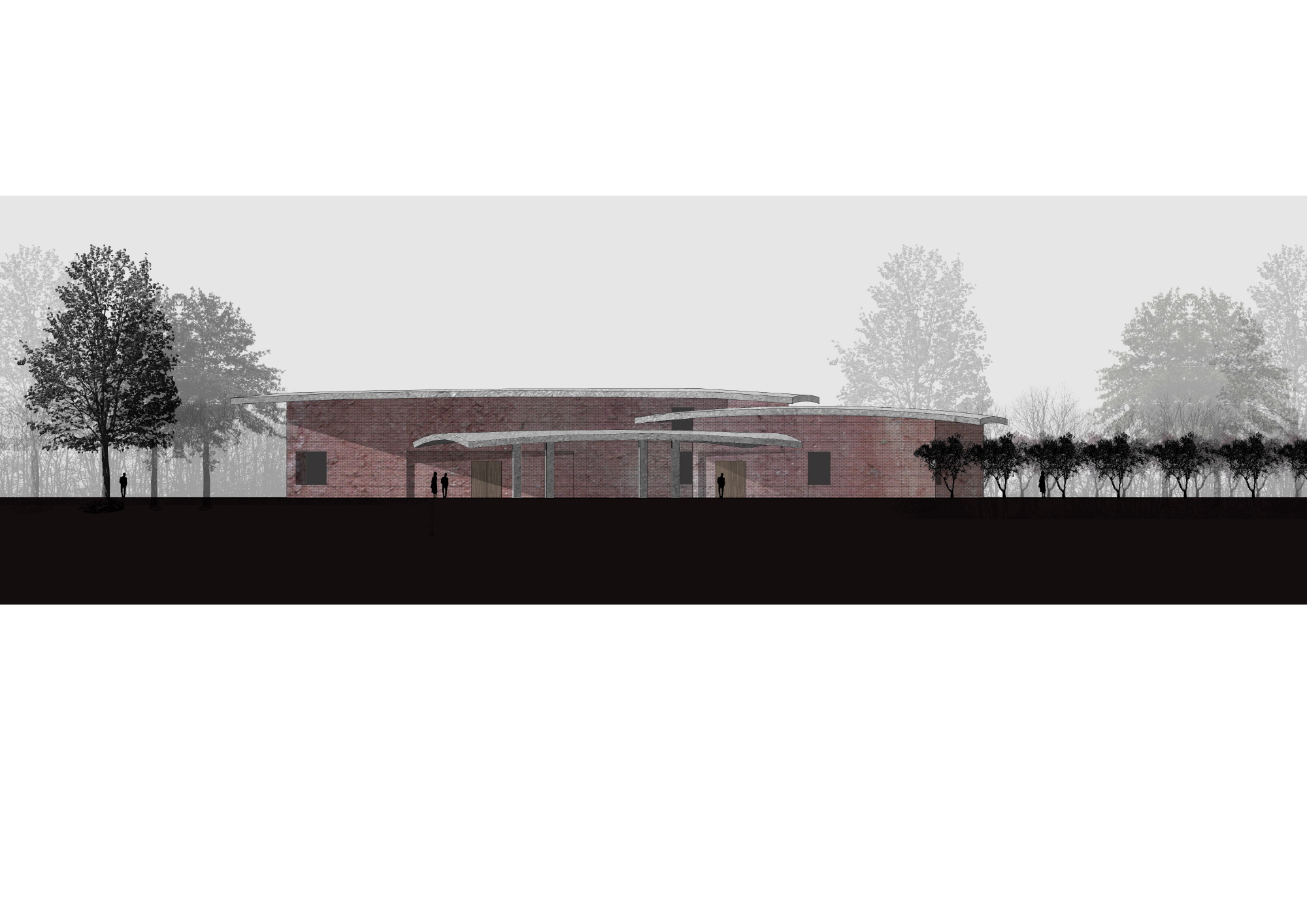 Entering and leaving the building is done from different sides and offers a different view of the landscape. In the design, much attention was paid to the presence of different mourning groups that are not mixed up with each other. Landscape and light play an orienting and accompanying role. The buildings are made of masonry and are capped by large fine roofs, slightly curved with corners that hang down slightly. Comforting architecture.
