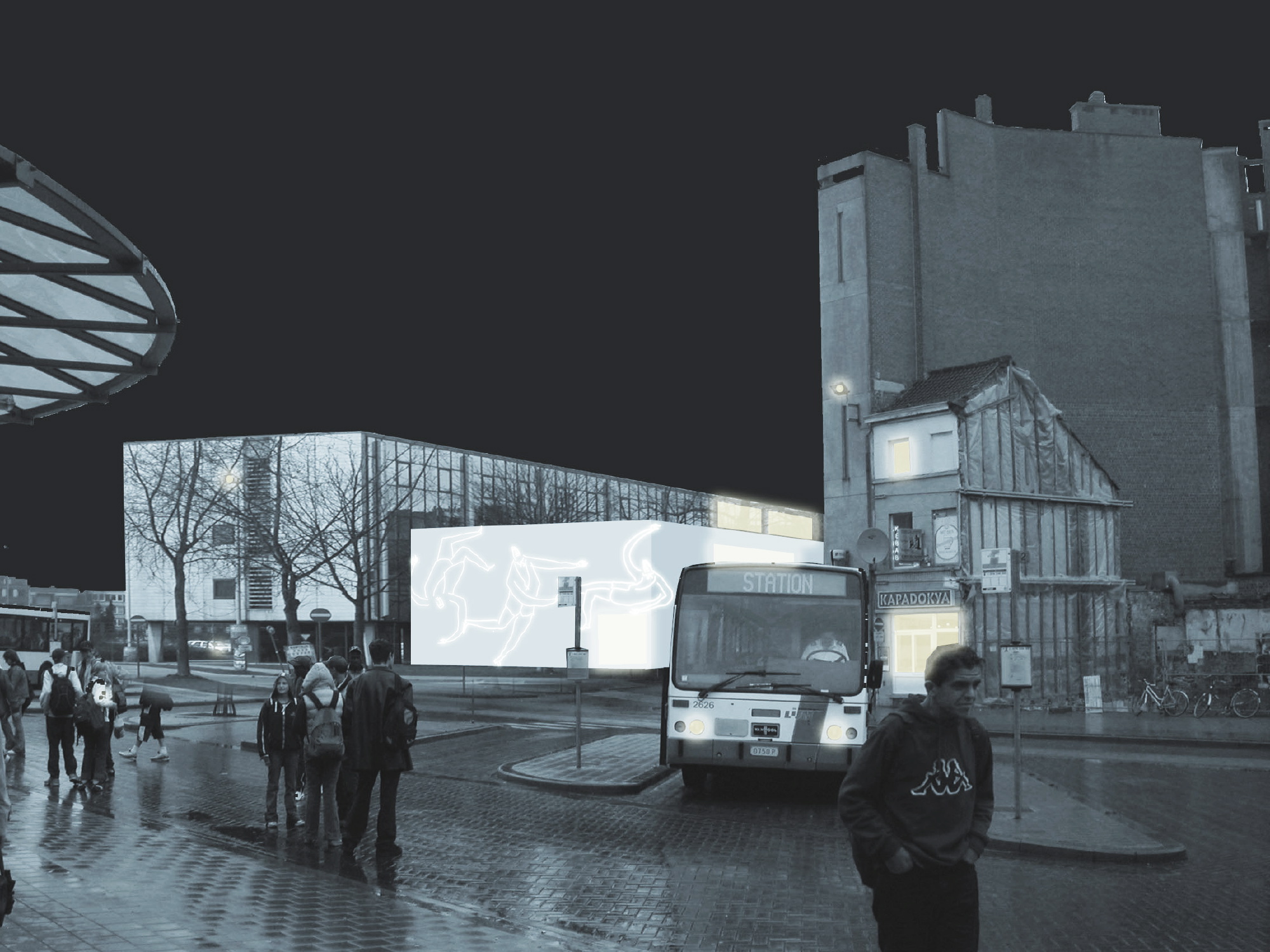 The new concert hall is a stand-alone volume, as an advance section of the Music Centre, a project that will soon be realised by the city of Kortrijk in the former Conservatory building. Because of its position, the Concert Hall delineates an entrance square to the new Music Centre in the extension of Casinoplein and forms, as it were, the fourth missing wall.