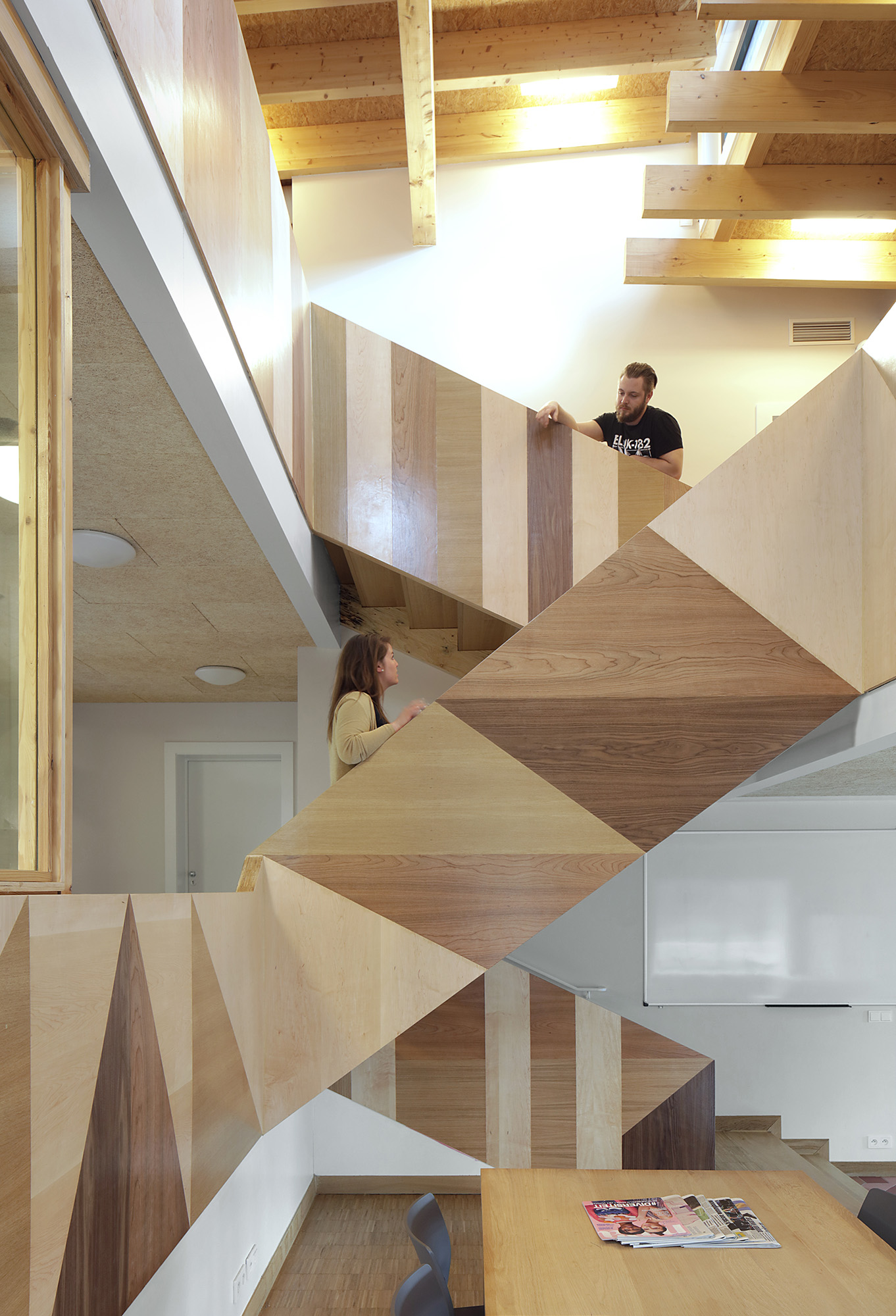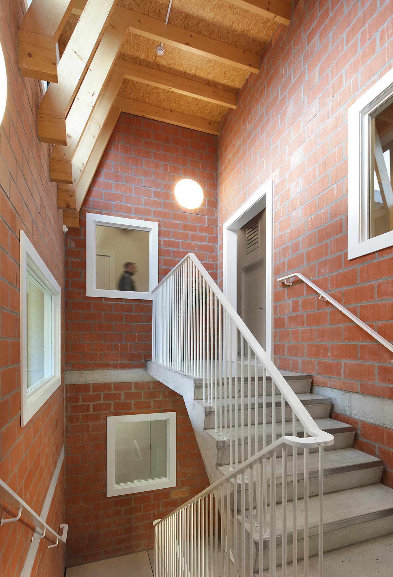 Centrally located in the building are the administration offices for the staff of Emmaüs, who accompany the young people in the institution and in their home and school environment.