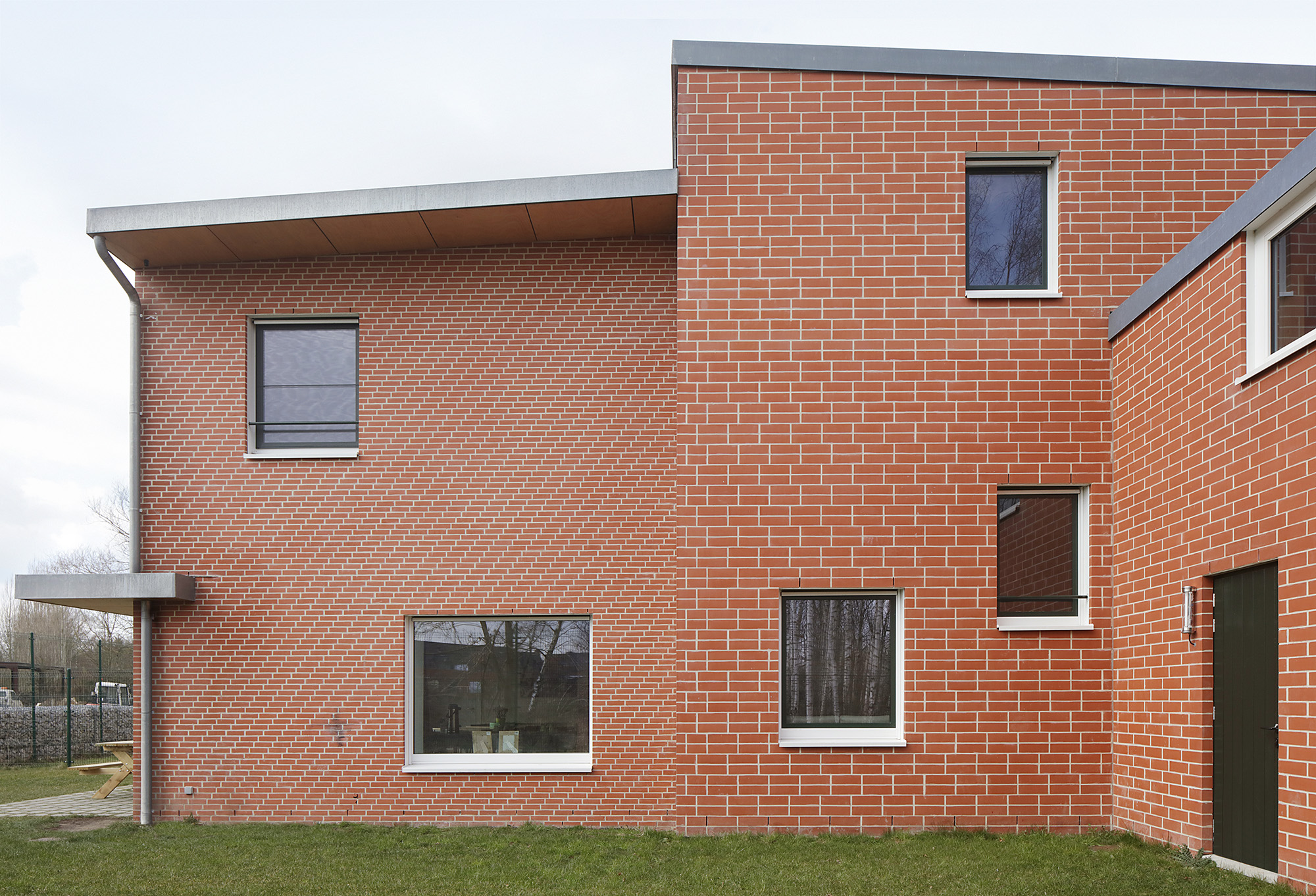 The project concerns the new construction of a closed facility as pilot project including the accommodation of offices for youth care Emmaüs. The building is located along an approach road to the city and in a future allotment of family homes.