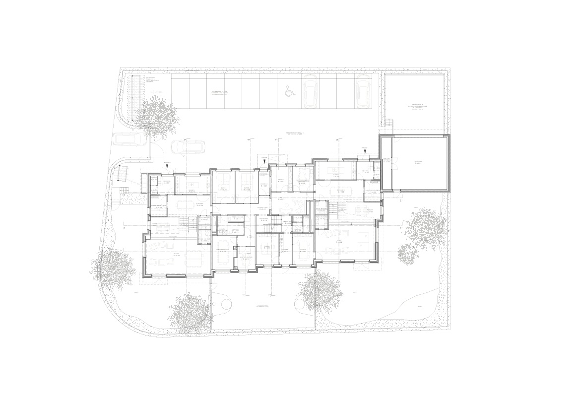 Two dwellings are planned for 6 young people each. The split-level principle ensures a domestic openness, a good relationship between living rooms and bedrooms and an optimal overview, essential for ensuring safety. Both houses have direct contact with the garden.