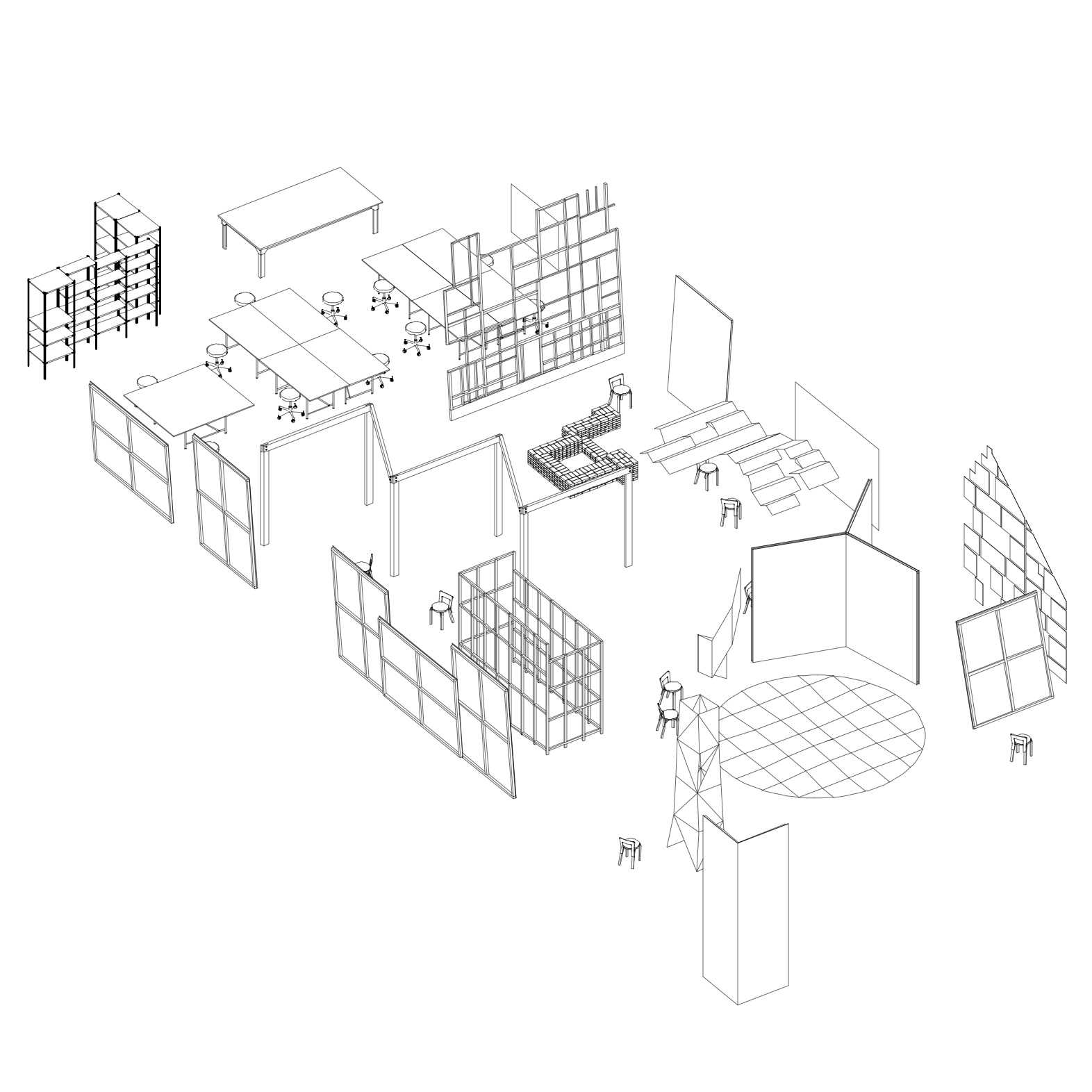 The two-part exhibition area at deSingel, the low-ceilinged small room versus the somewhat theatrical-looking large hall, will become ‘the study room’ and ‘the events square’. The study room offers the opportunity to go deeper, if the visitor so wishes.