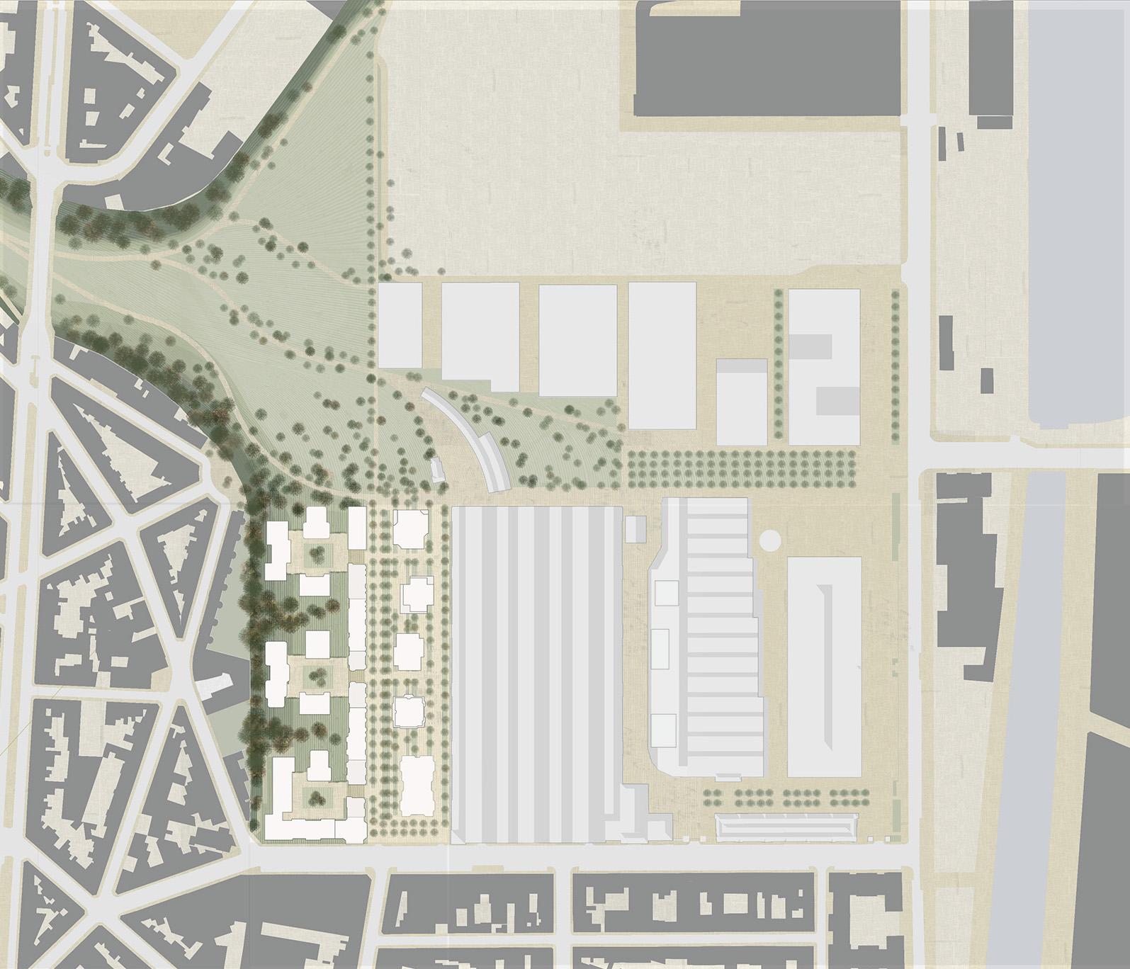 The layout of Zone C is guided by the definition of places full of character. Places with a recognizable, urban identity that transcends the generic and recognizes and deploys the typical of Tour&Taxis. Three rows, three types of buildings. Together they flow into the open landscape. A new face of Tour&Taxis at the park, an invitation to enter.