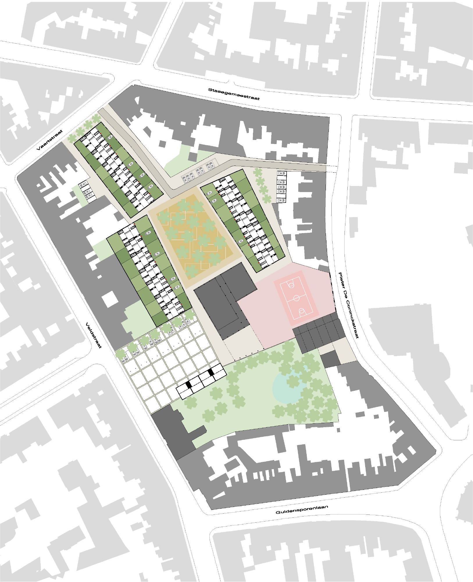 The site of the former textile company Vetex enjoys an interesting location in the immediate vicinity of the heart of the city. The demolition of a number of the existing factory buildings creates an unexpected public space that, in addition to giving a boost to the district, can also function on the scale of the city.