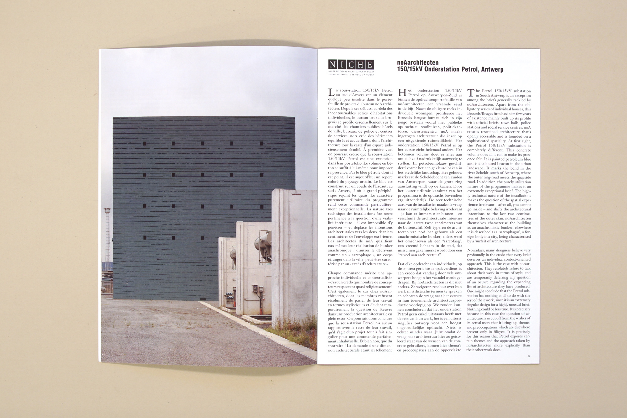 Publication on the occasion of the exhibition noAarchitecten – 150/15kV Onderstation Petrol organised in the framework of NICHE – Young Belgian Architecture in Bozar.