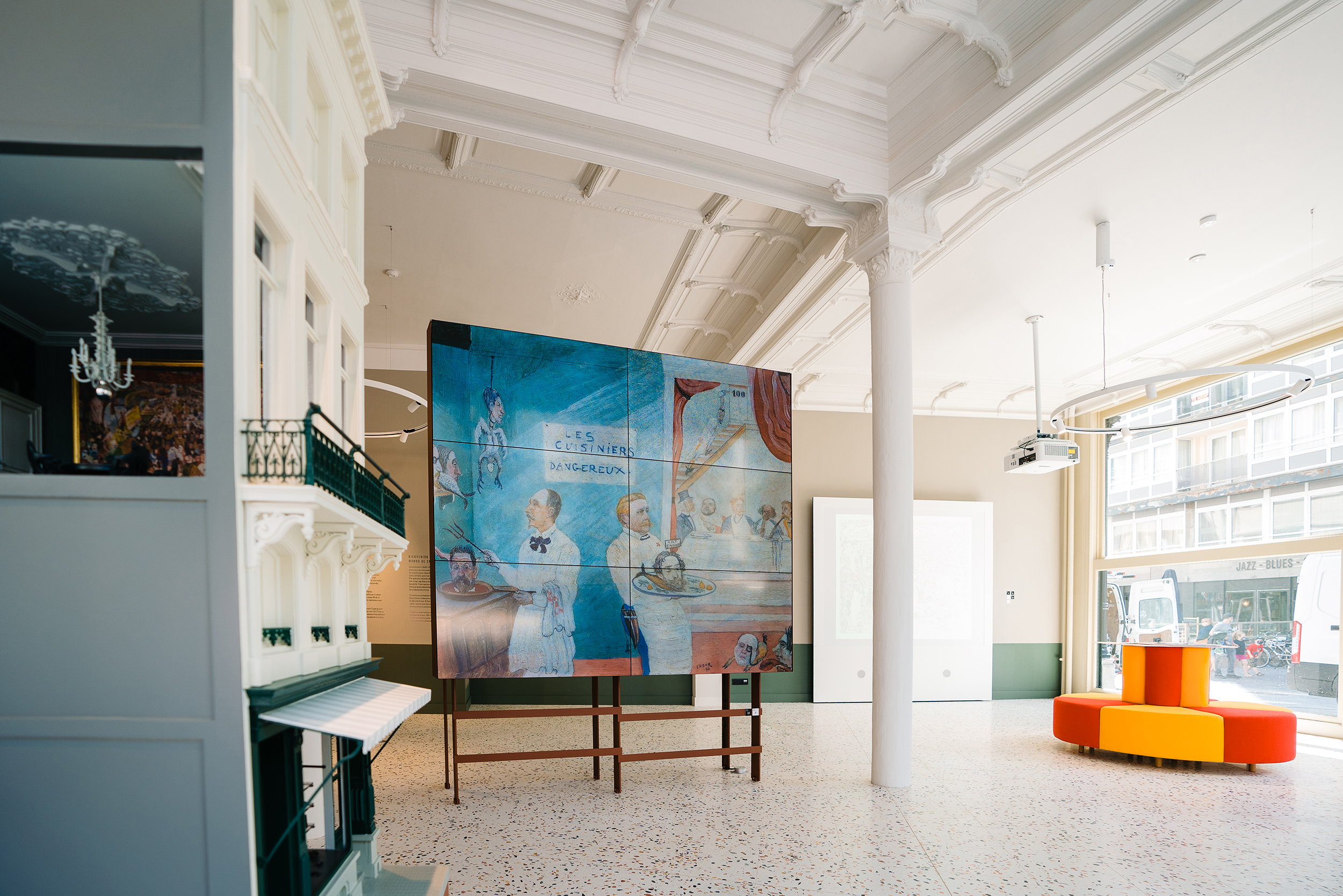 Entering the visitors’ centre and Ensor House should, from the very first moment, become a visit to the master’s world and should also conform to Ensor’s spirit. This world, however, is so rich and offers so many that no tricks are needed to interest a broad public.